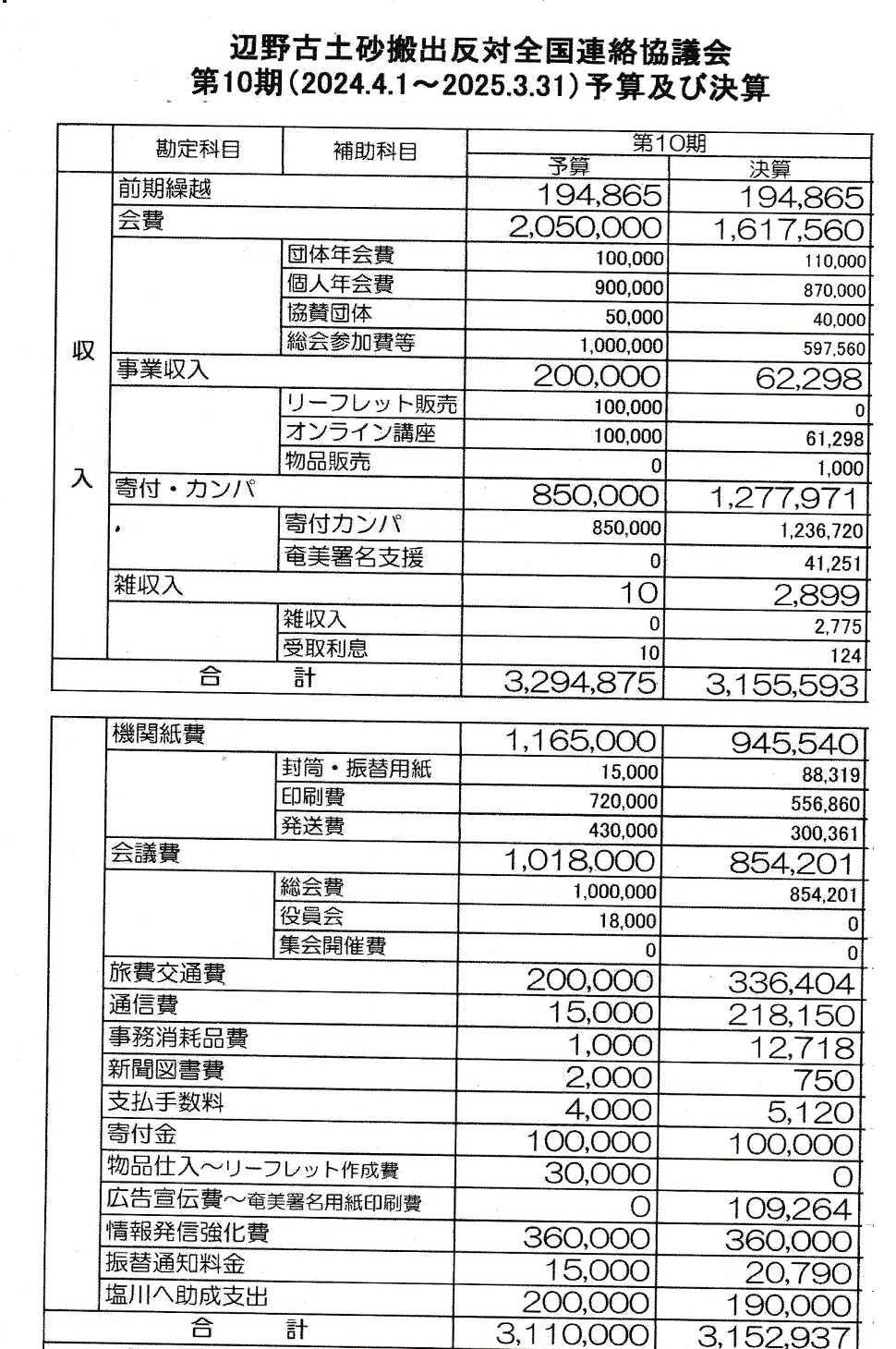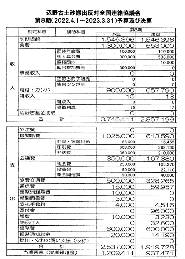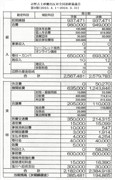 - 主に活動報告のための機関誌制作費、事務費、広告宣伝費、交通費など詳細は決算報告書をご覧ください。